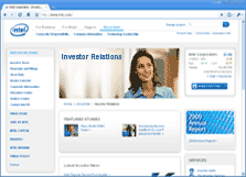 Investor Relations: Here you find the basic required SEC filing documents, but usually in a very attractive and organized presentation on each company website, and Intel doesn't disappoint. Something unusual that we found is an "Education Center" link within Investor Relations, which takes advantage of embedded video capability to present some pretty neat videos on Intel's technology and specific applications. [Direct link: here >]